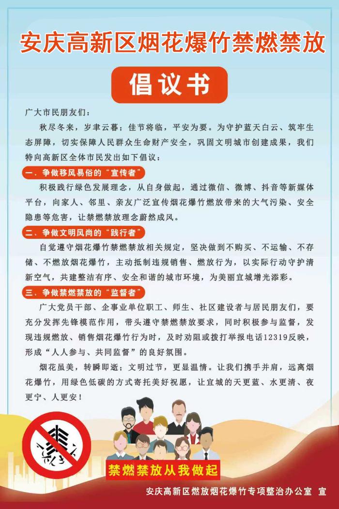 安庆高新区烟花爆竹禁燃禁放倡议书